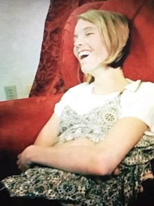 The morning I got the phone call that Callie had passed away, I was alone in my living room. I fell to my knees and just sobbed. I have always desperately held onto a hope that someday Callie, as well as my mom, sister and myself, would be healed of this horrible disease. So when she passed it hurt real bad. As I laid on the couch, with a tear stained face and thinking of Callie, I knew that she was there in the room with me. I could feel her there! As I looked to where I felt she was standing, it was like she was telling me that it was OK. It was all going to be OK! I wondered why she came to me, with everyone she could visit, why me? It was so comforting and just what I needed. She was so good like that!